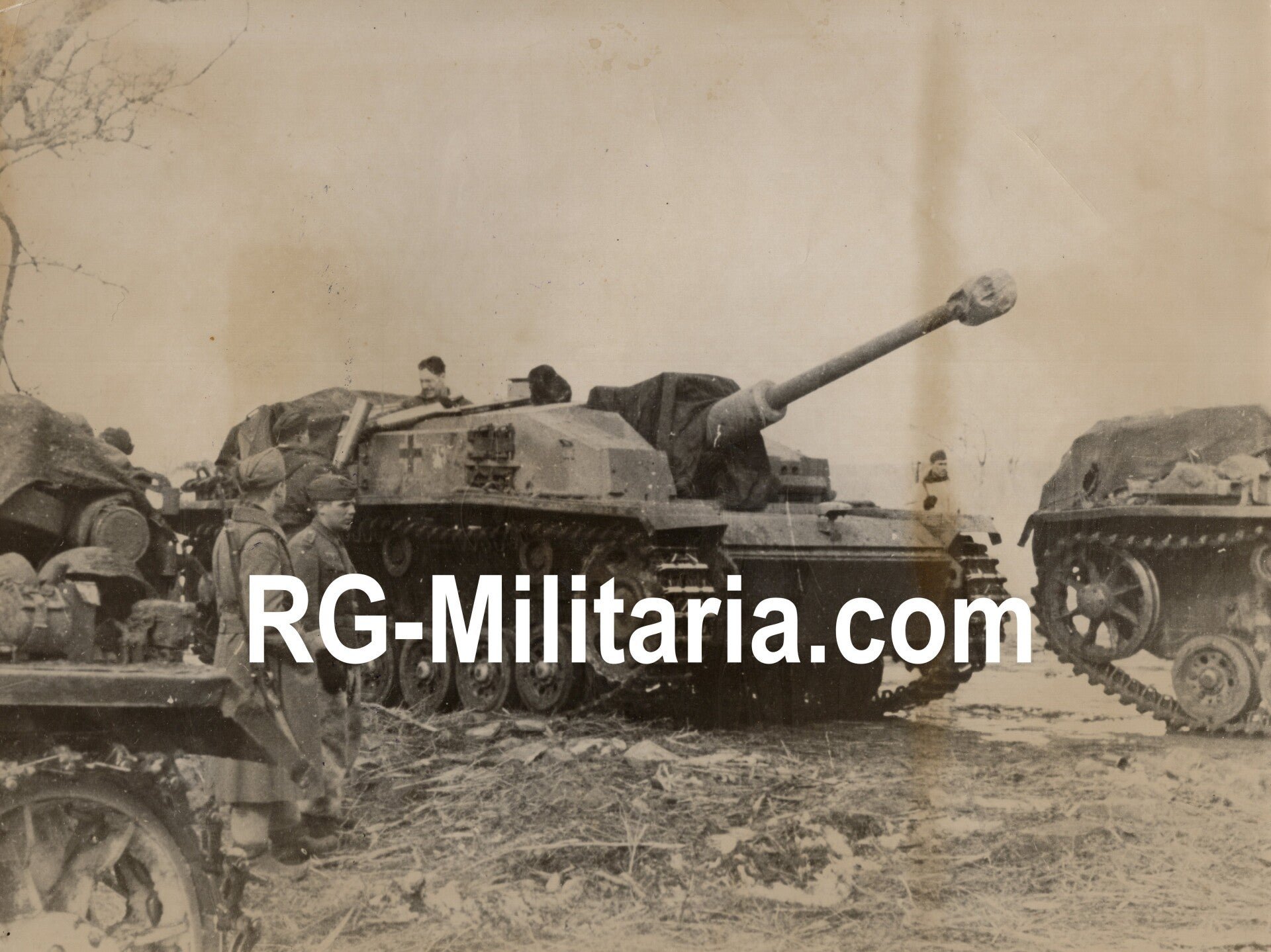 Original WW2 German Press Photo - German Panzer Stug III tank getting new ammunition, Eastern Front (1943)