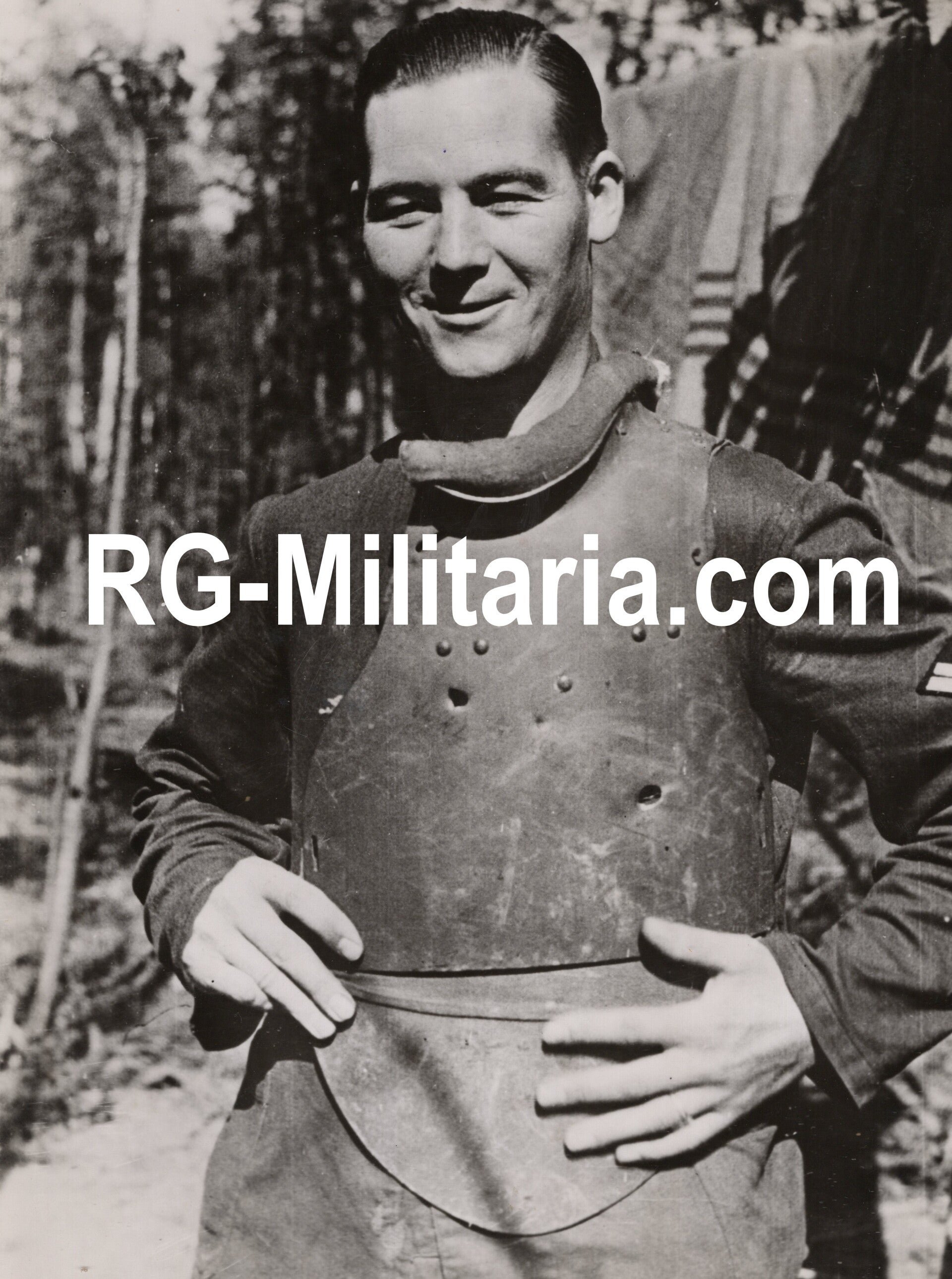 Original WW2 German Press Photo - German soldier with armor plates ''Brustpanzern'', Ladogasees, Eastern Front (1943)