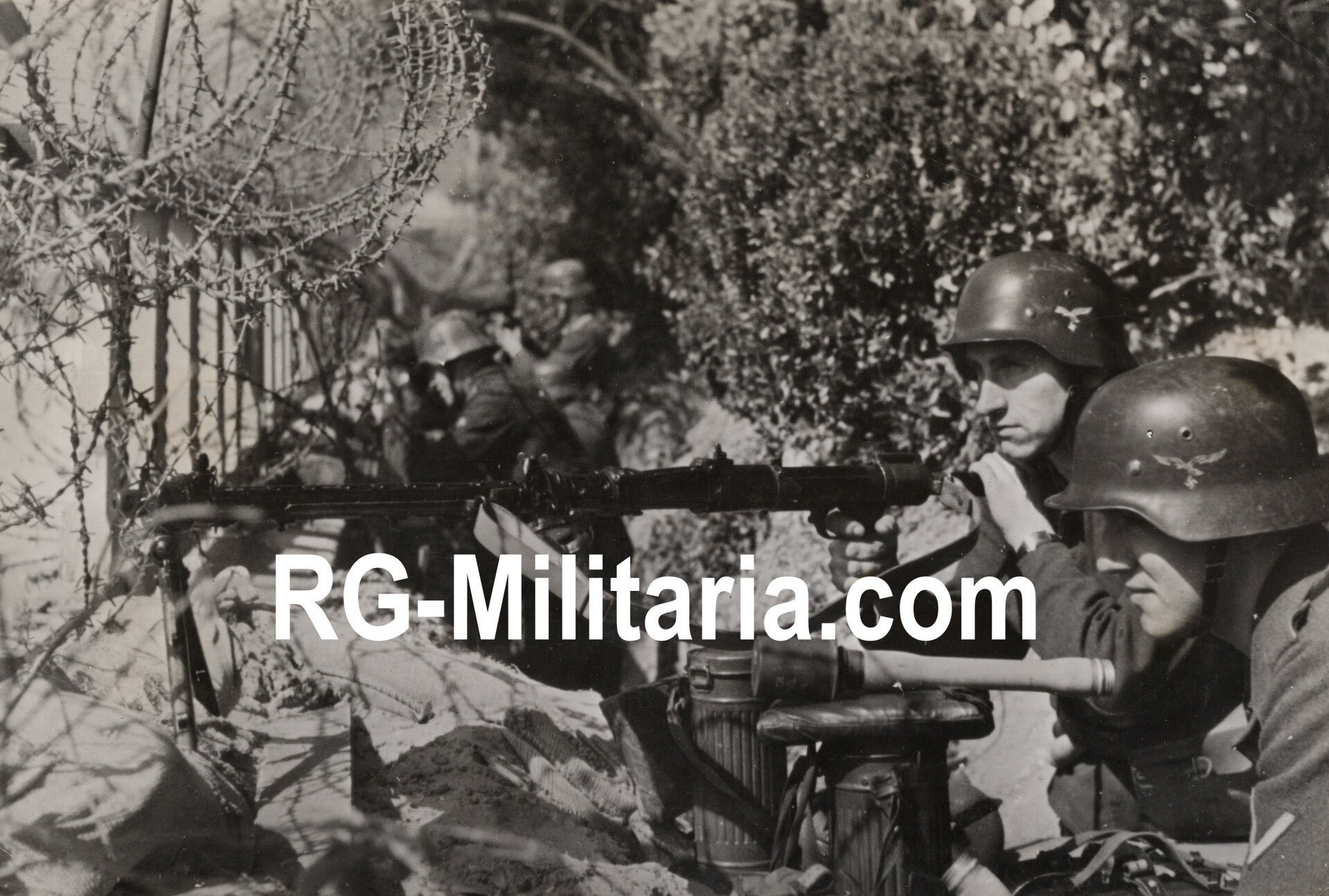 Original WW2 German Press Photo - Luftwaffe soldiers with an MG 34 and Stielgranate at the western front (1941)