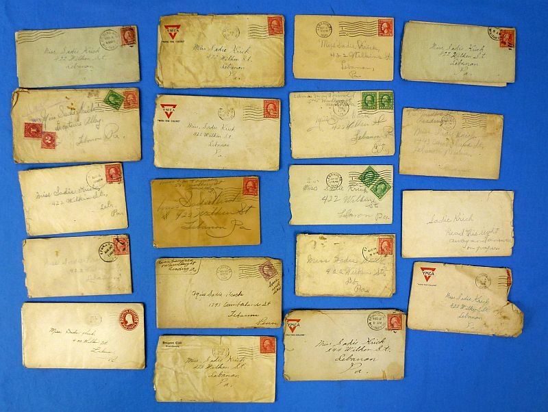 The group of letters is comprised of seven letters from Walter J. Runkel of the U.S. Army First Cavalry Regiment in Arizona to 'Miss Sadie Kick' in Lebanon, Pennsylvania. There are also 12 letters to Miss Kick from friends or family members. The letters appear to date from 1918 to 1920. The letters are written in pencil and legible.
