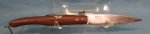 Original era manufacture. Folding knife with a 6 inch blade, lightly etched into one side, 'POILU 1914'. Wooden handle with a steel locking mechanism and pommel loop. Light age and wear.