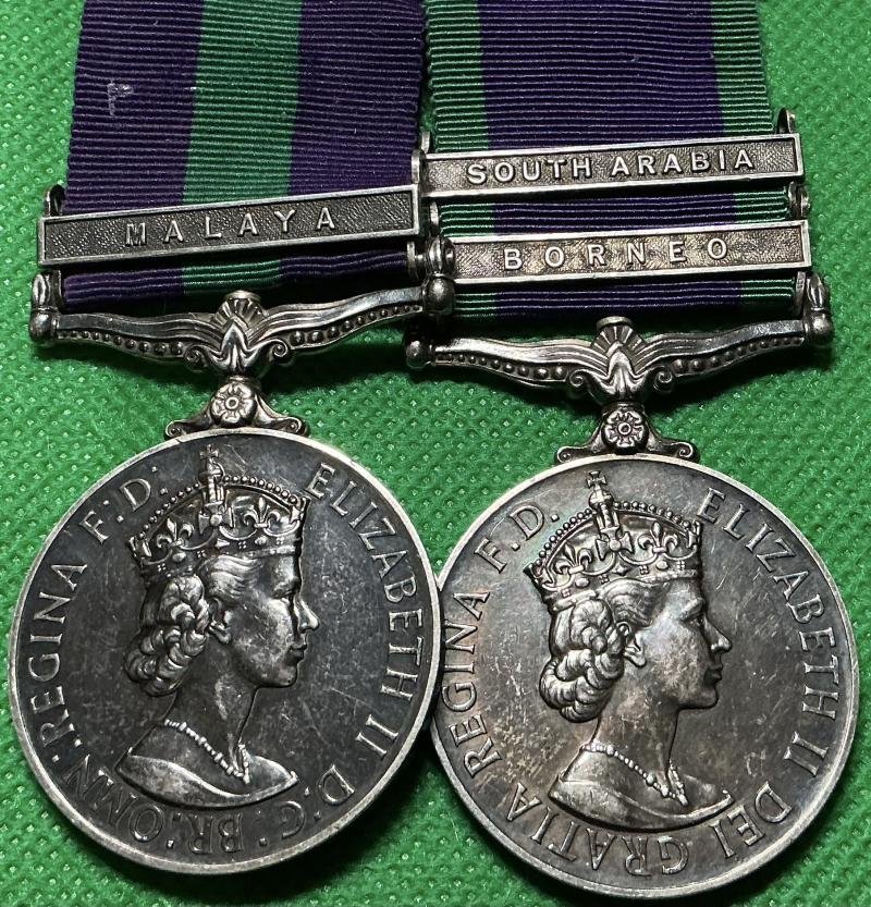 EIIR 1st type GSM 1918-1962 With Malaya clasp & GSM 1962 With Borneo & South Arabia claspsTo- 22542611.CPL.G.R.PICKETT.K.D.G (GSM)& 22542611.CPL.G.R.PICKETT.Q.D.G (GSM 1962)NEF/GVF & Swing mounted as worn
