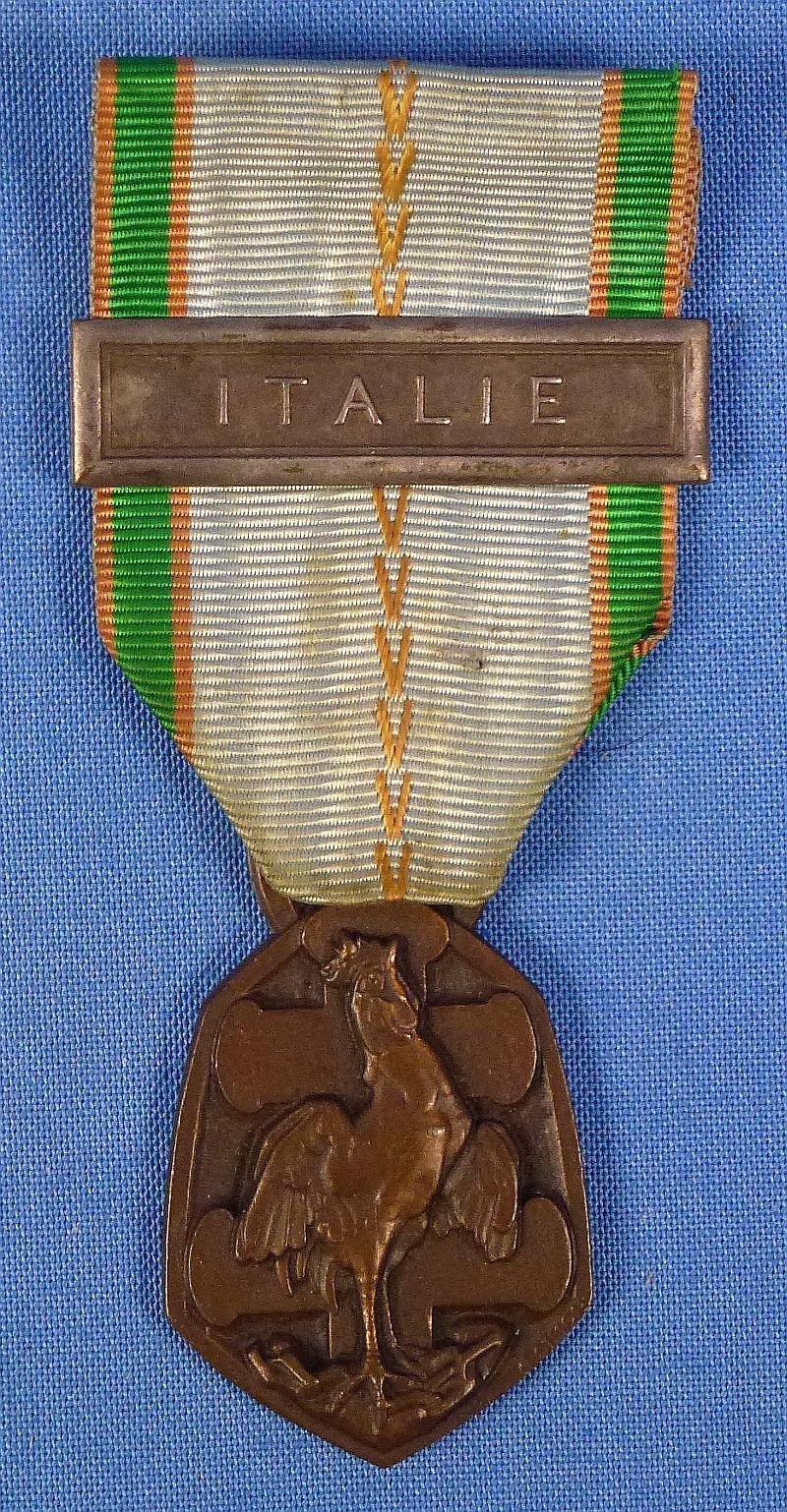 French WWII 1939–1945 Commemorative War Medal with 'ITALIE' Bar