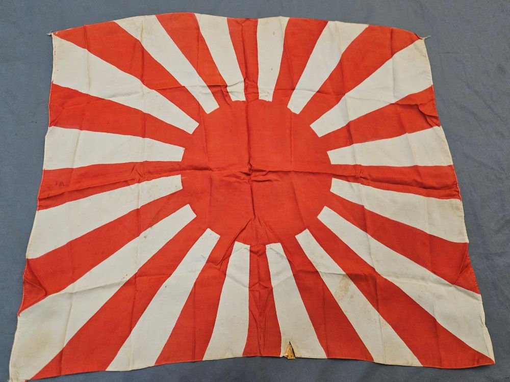 Original WWII Japanese Rising Sun Battle Flag. One small tear on the bottom as pictured.Free shipping in the US. Foreign buyers contact us for a shipping quote. Located in our Portland store.