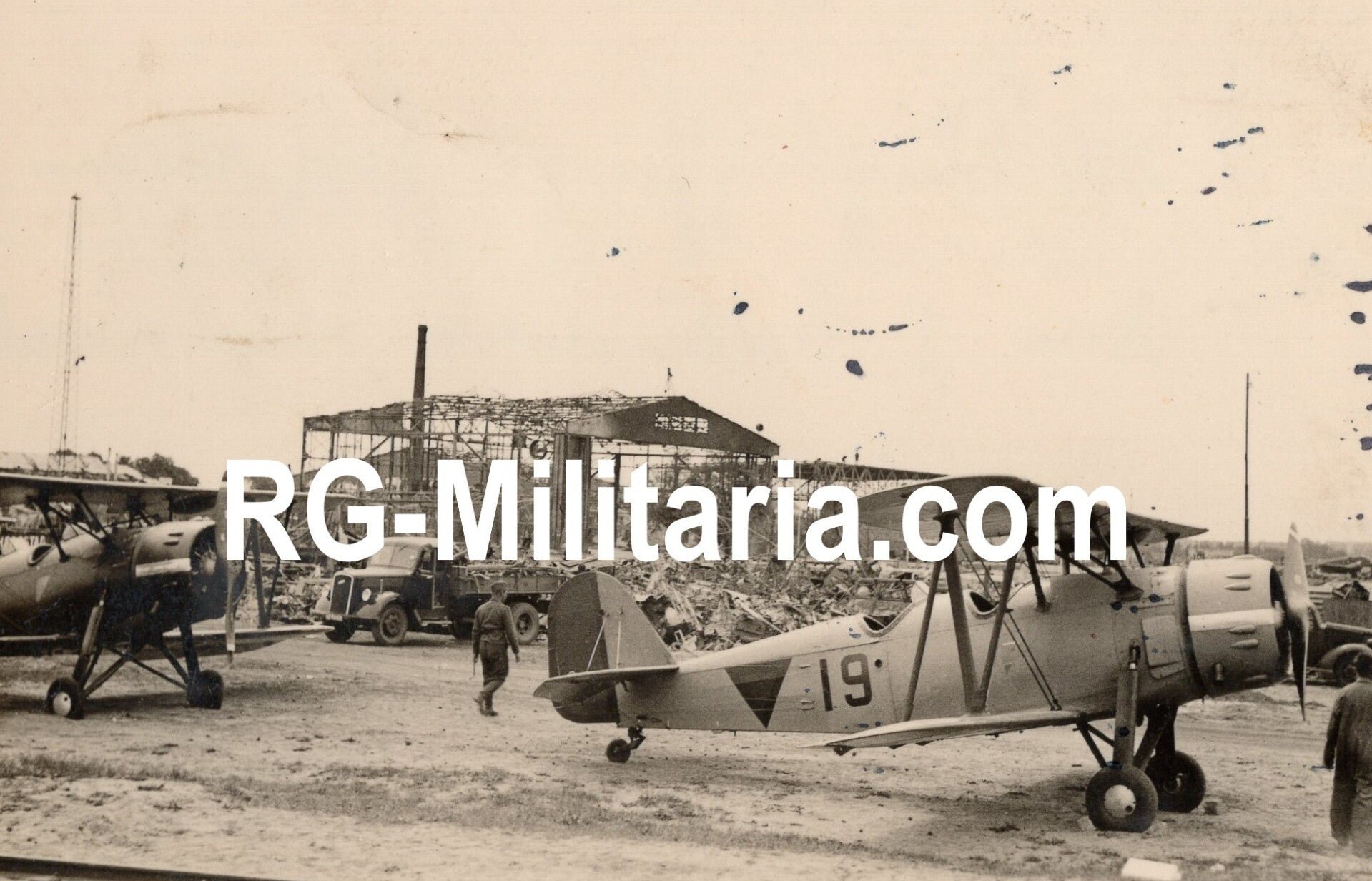 Original WW2 German Photo - Dutch LVA airplanes Koolhoven FK51 ''19'' at Waalhaven, Rotterdam airfield, Holland (1940)