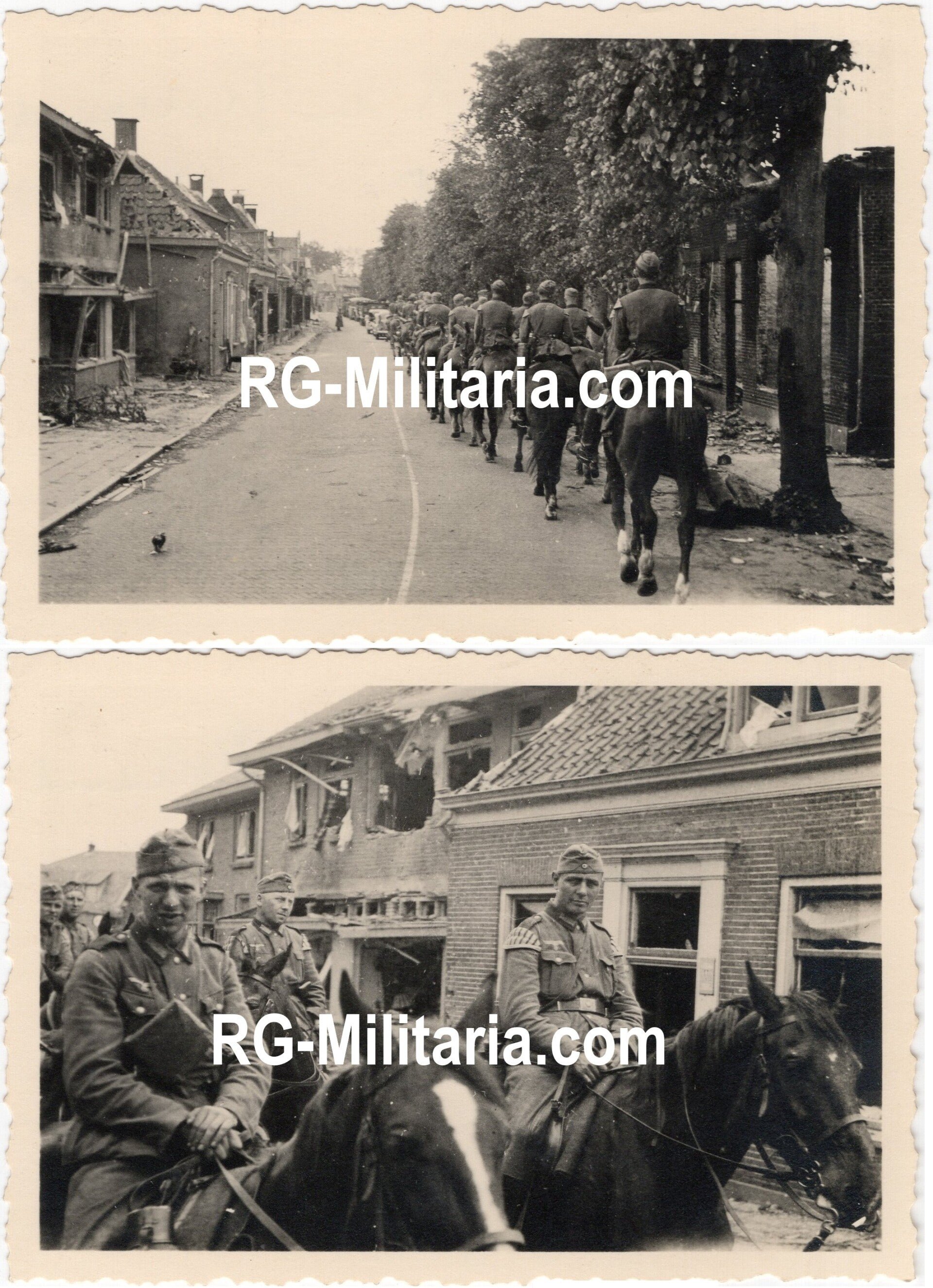 Original WW2 German Photo - German Cavalry enter Holland during the Blitzkrieg, May (1940)Approximately 6 x 9 cmMany destroyed houses.Originele Wo2 Duitse Foto - Duitse Cavalarie trekt Nederland binnen tijdens de Blitzkrieg, Mei, Nederland (1940)Ongeveer 6 x 9 cmVeel vernietigde woningen.