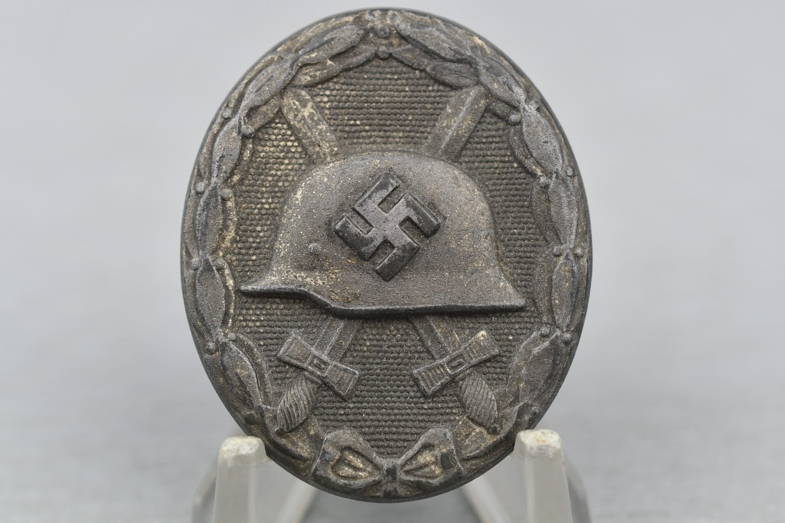 Nicely worn Wehrmacht silver wound badge. Maker marked on the reverse with 107, which is the code of the firm of Carl Wild in Hamburg