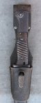 Original period manufacture. Standard WWII Wehrmacht service bayonet, produced by Holler (fze code) in 1943. Nice original blue finish to the blade surface, dark plum bakelite grips, blue steel finish to the scabbard. Original black leather frog which has had it's pommel strap removed as often found. Decent original bayonet.