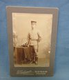 Original era manufacture. Sepia tone, full length view of an enlisted soldier in the new summer uniform. Waistbelt with Murata bayonet on his hip. Measures 3x4 inches.
