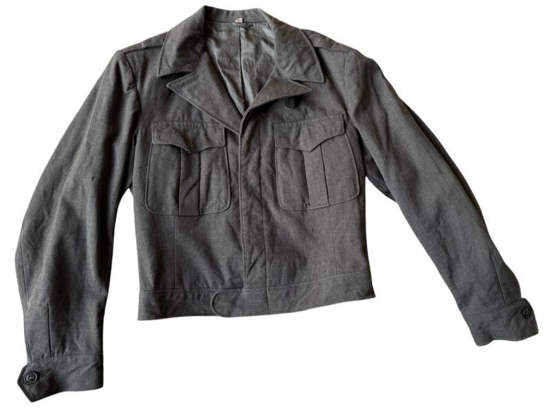 U.S. Army Wool Field Jacket or so-called IKE jacket. The jacket is in overall nice used condition with some minor wear and tear. The jacket is fitted with original label dated October 1944 and makers marked 'Good Grade Clothes Inc'. The jacket compromises a large 42R size. Rare and highly desireable. Also a good size for re-anactment. Hard to find in such a size!