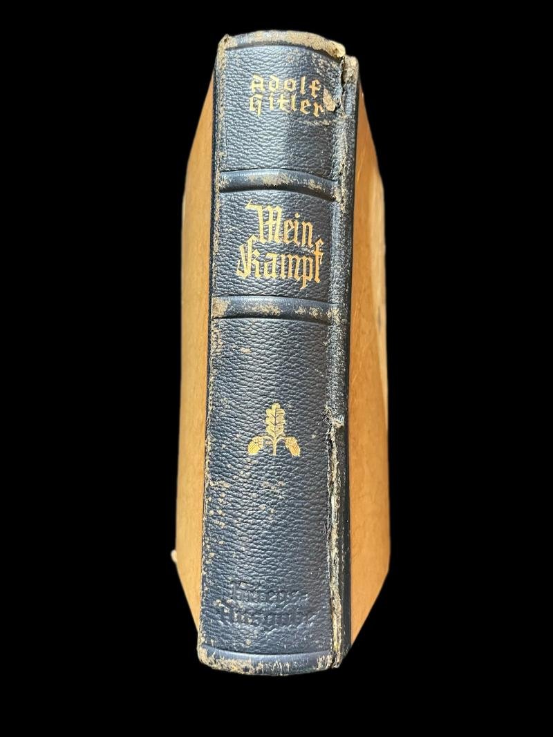 This is a worn wedding edition of the Mein Kampf by Adolf Hitler, signed by the Mayor of Godesberg in 1942.Check out our YouTube channel below.https://m.youtube.com/results?sp=mAEA&search_query=chase+militaria+