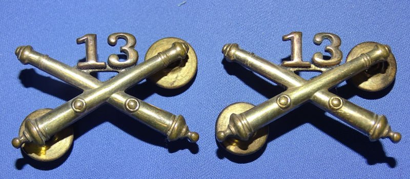 WWII Army 13th Artillery Regiment Officer's Collar Insignia Pair