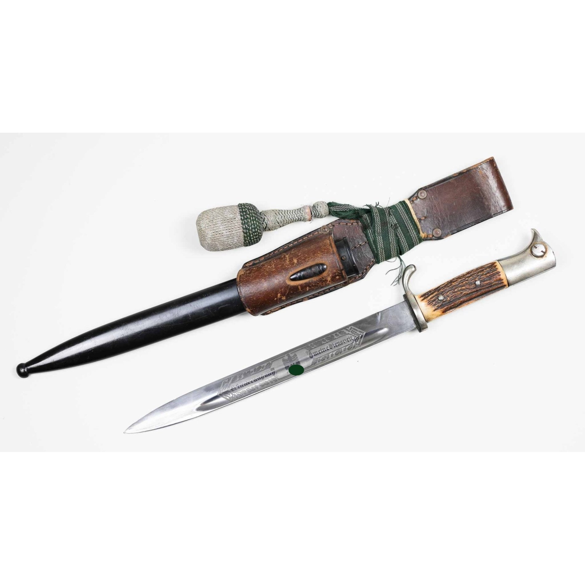 Wehrmacht Paradebajonett mit Klingenätzung 'Zur Erinnerung an meine Dienstzeit' und 'Inf. Rgt. 66 Magdeburg' mit Hirschhorngriff