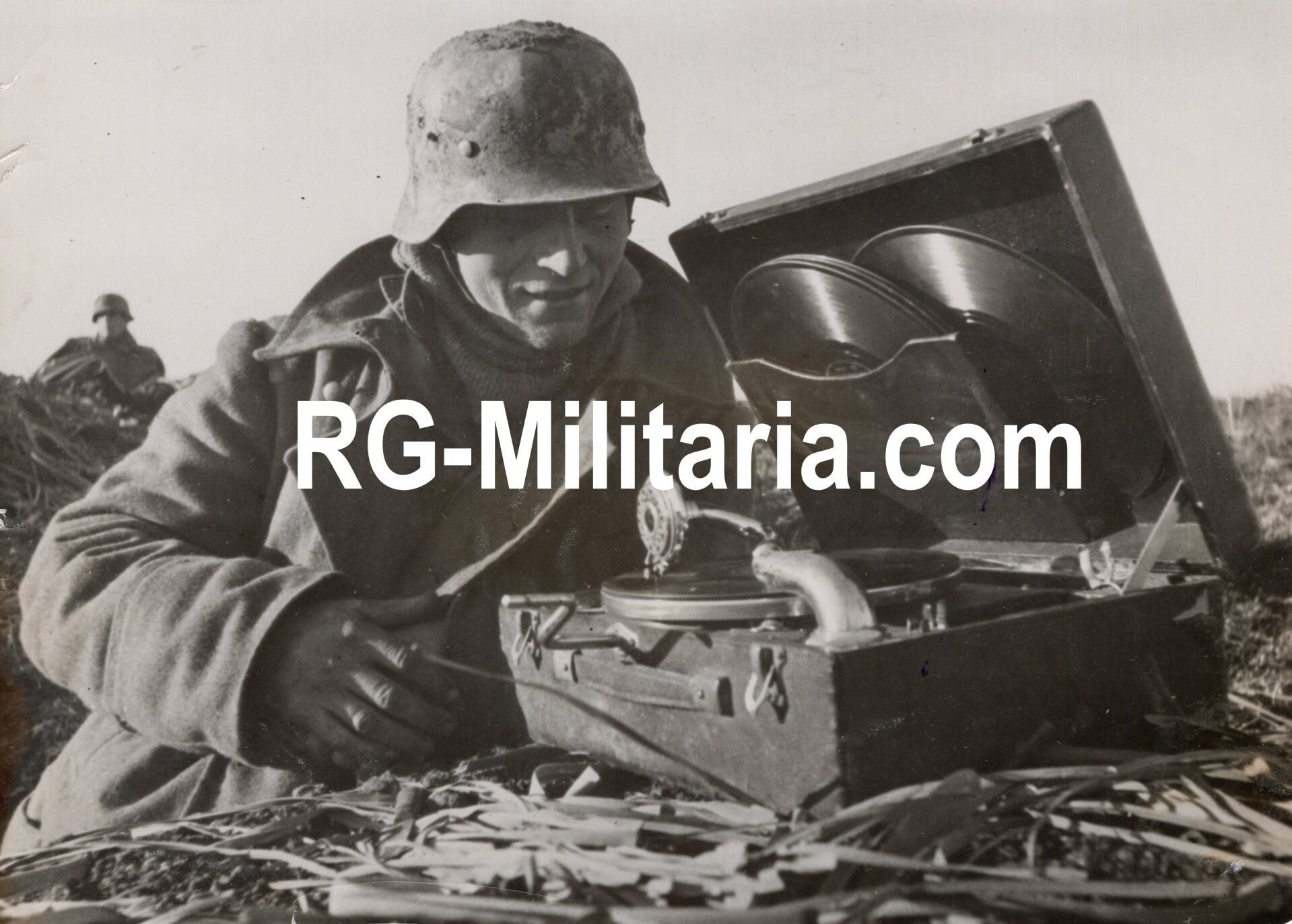 Original WW2 German Press Photo - German soldier listening to music on the Nettuno front, Italy (1944)Approximately 18 x 13 cmBy Kriegsberichter KoltzenburgOriginele Wo2 Duitse Persfoto - Duitse militair luistert naar muziek op een LP aan het Nettuno Front, Italië (1944)Ongeveer 18 x 13 cmDoor Kriegsberichter Koltzenburg
