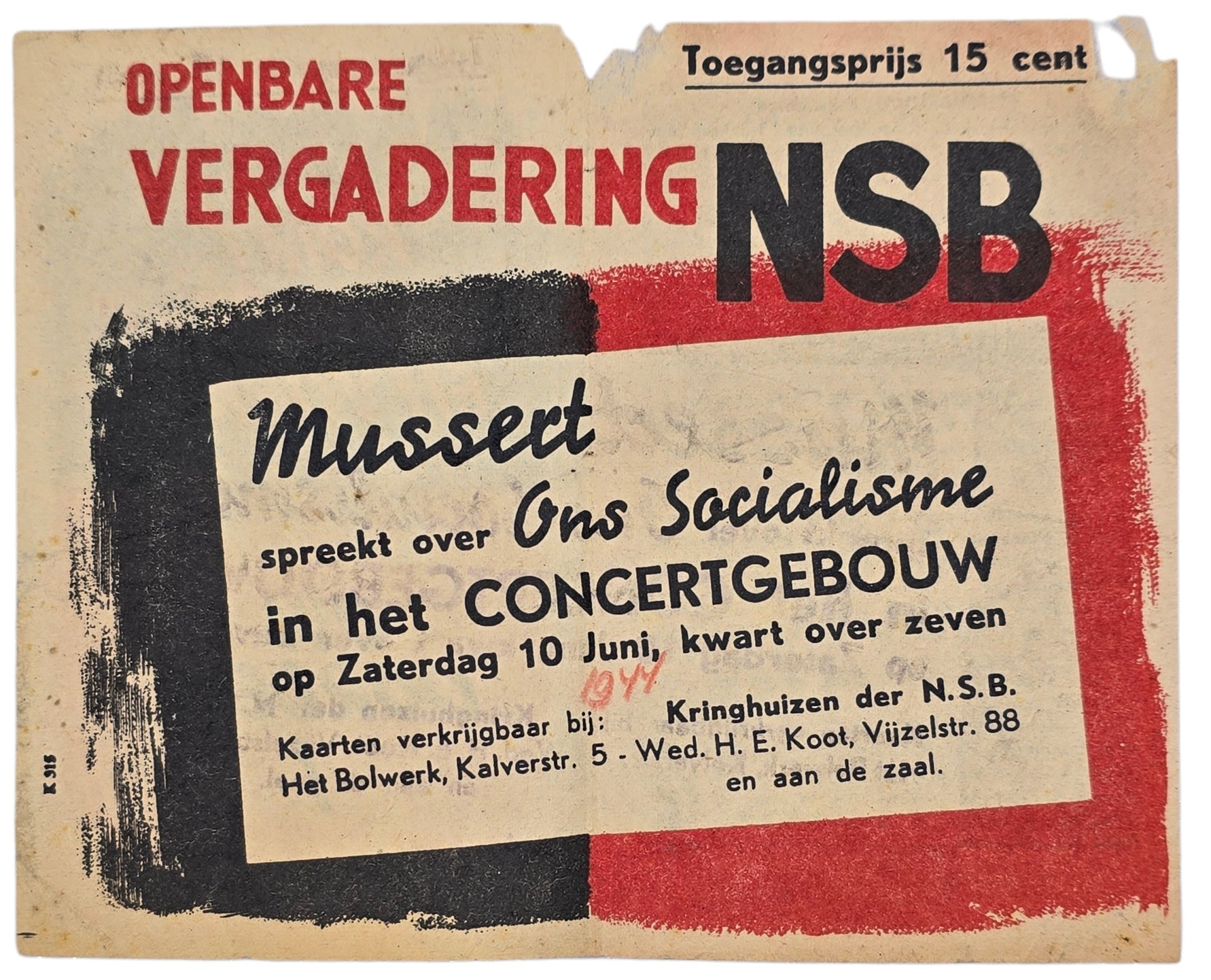 Original WW2 Dutch Collaboration NSB Document - NSB gathering, Anton Mussert, Concertgebouw, Amsterdam (1944)