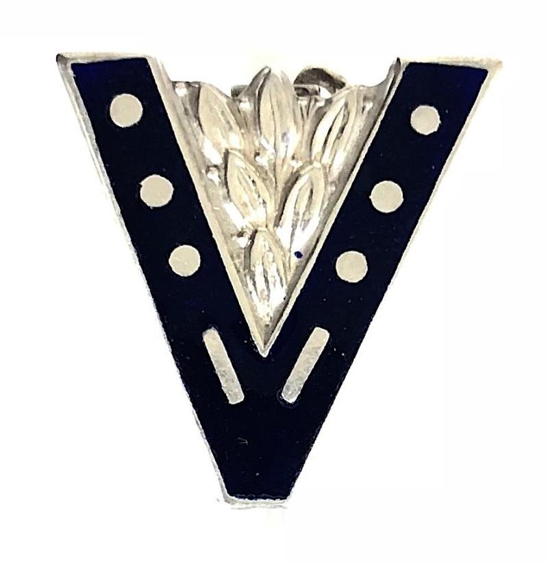 WW2 Churchills V For Victory patriotic silver & enamel home front badge