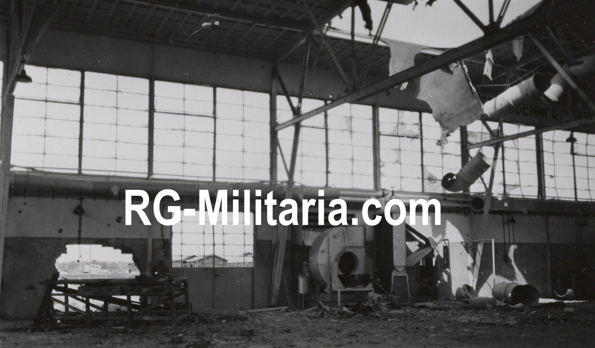 Original WW2 German Photo - Bombed hangar at the Dutch LVA airfield of Bergen, Holland (1940)