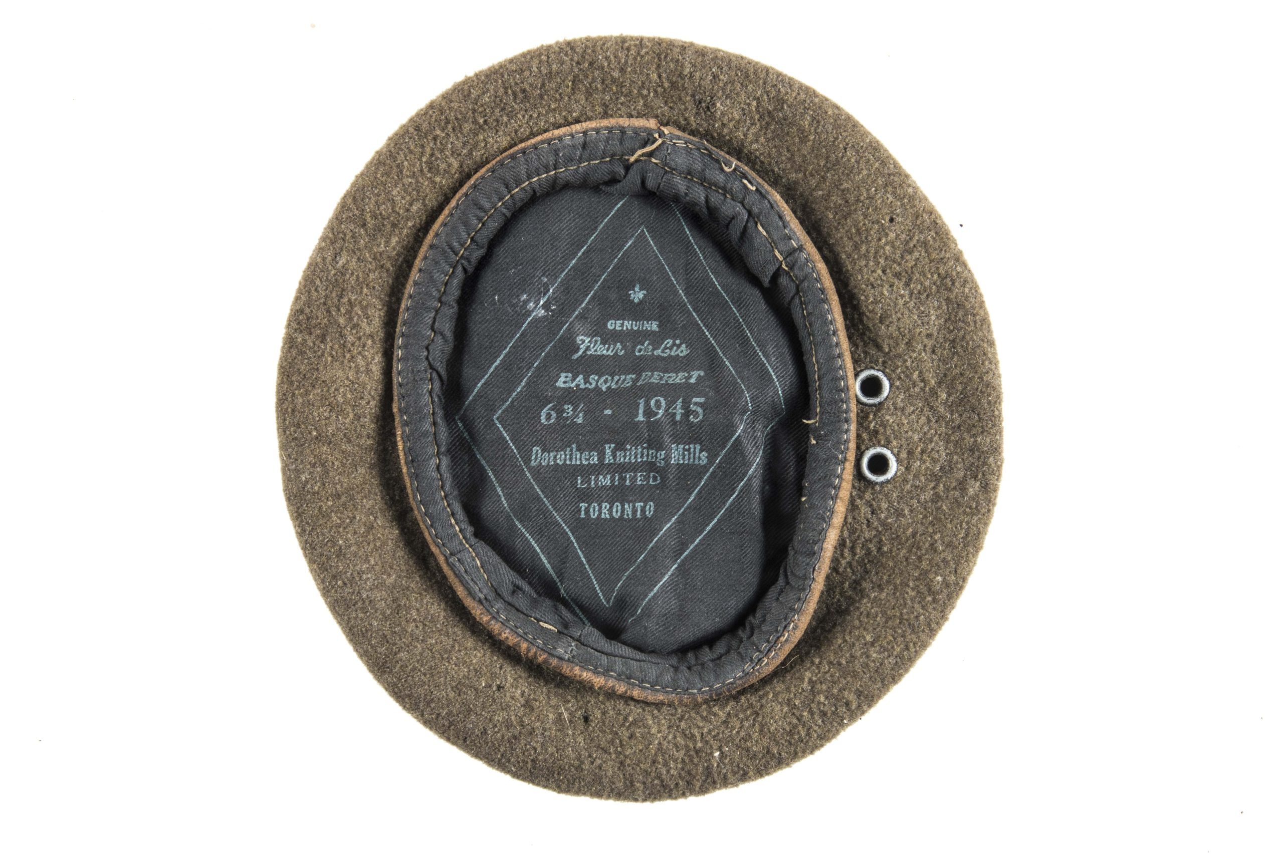 Canadian beret marked Basque Beret Dorothea Knitting Mills Toronto 6 3/4 1945 in good condition.
