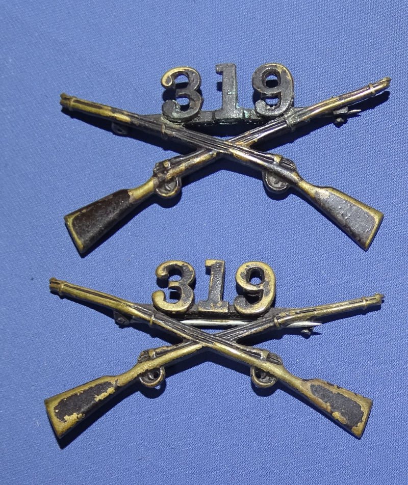 Pair WWI 319th Infantry Regiment 80th Division Officer's Collar Insignia