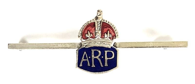 A very good original circa 1940's miniature size 'Air Raid Precautions silver plated enamel pin badge', mounted on a slender bar. Very good condition, complete with original pin fittings, no damage to the enamel, an excellent example..Width approx 50mm.Height approx 18mm.