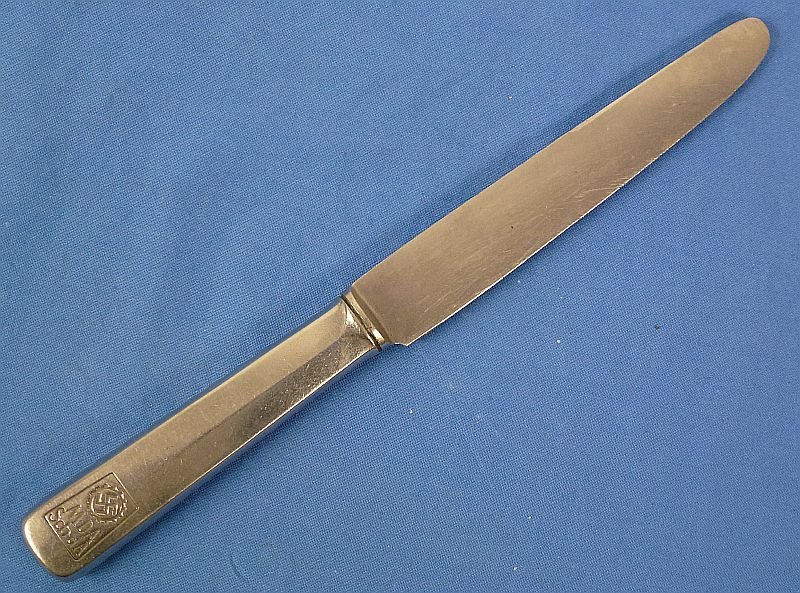The knife has an overall length of approximately 9-1/2 inches.The base of the knife bears the emblem of the DAF Labor Front and the designation of 'M.D.A. Sch.d.A.', for 'Modell des Amtes Schönheit der Arbeit' (Model of the Office for Beauty of Labor). The opposite side of the knife grip has an emblem which appears to be 'AIG', or it may be a monogram for a firm with a name beginning with the letter 'I' and the corporate designation of 'A.G.'. Very good condition.