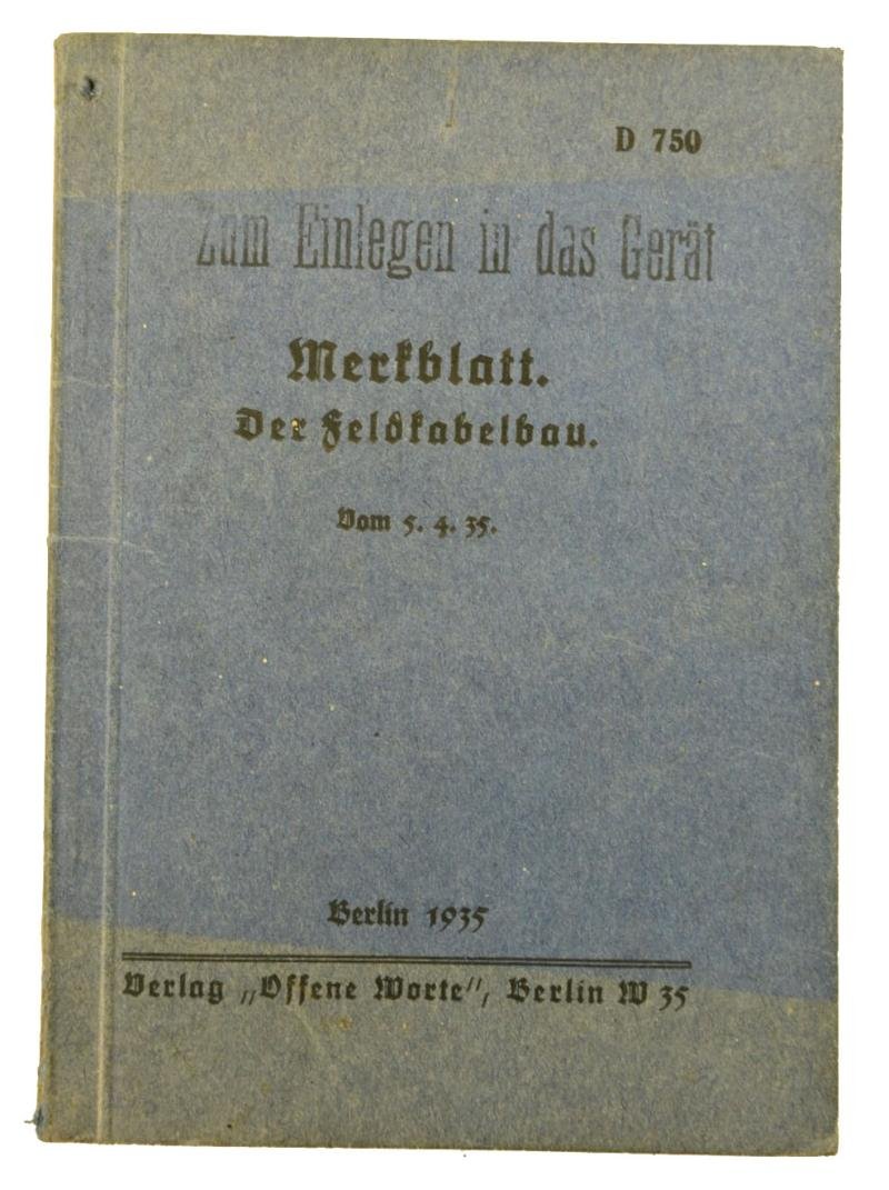 In a very good condition a German Wehrmacht ''Merkblatt'' Instruction Manual 'Fieldphone signal making'' 1935