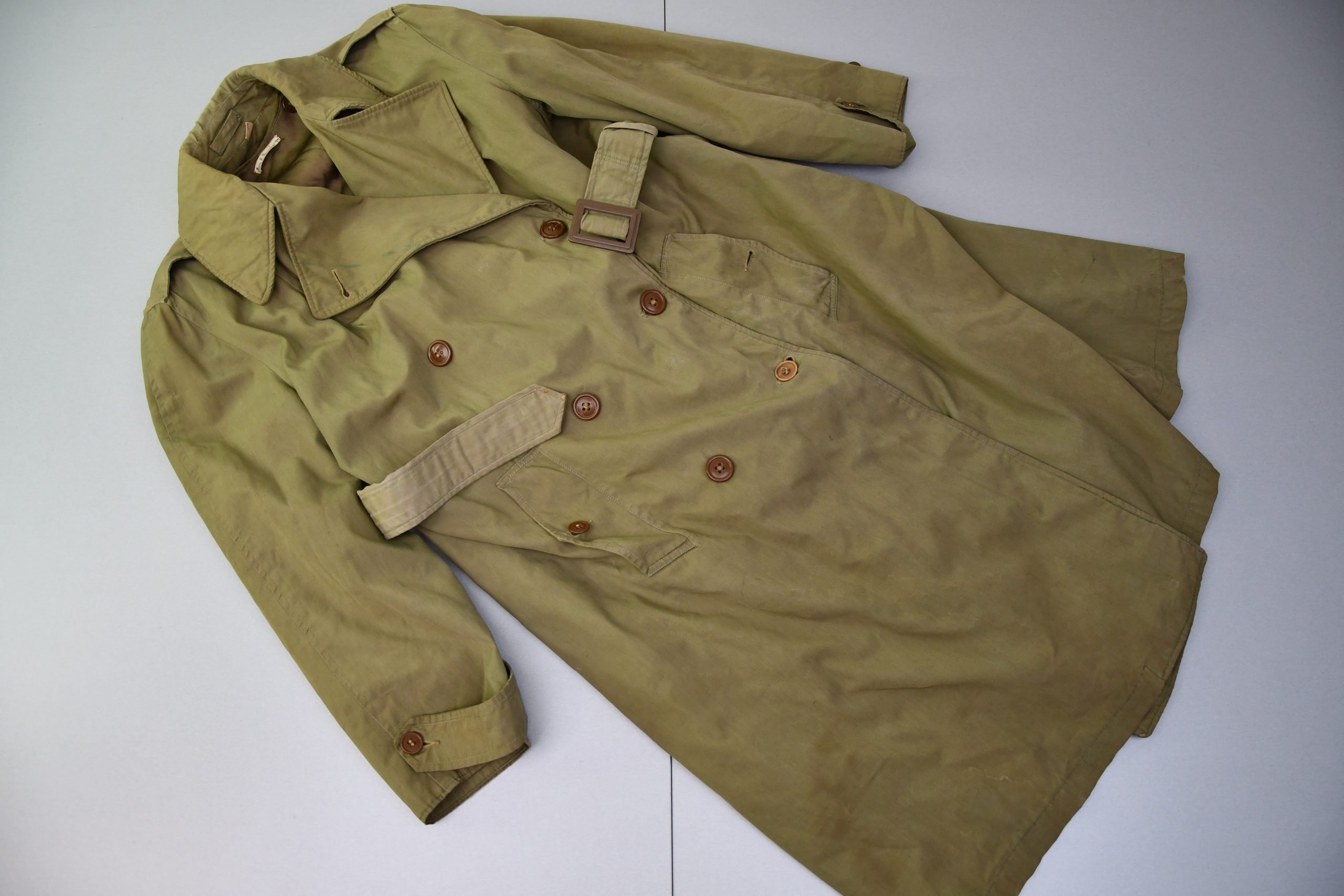 A rare overcoat worn by Officers of the Women's Army Corps and Nurses of the Army Nurse Corps.Slightly worn the coat remains in very good condition and comes complete with its removable liner and waist belt. The latter is of a slightly lighter color than the rest of the garment.Coat is a Size 16R and is identified to a Mary E Greenberger. No further research has been done on the wearer.A nice and rare uniform piece for your WW2 women's uniform collection.