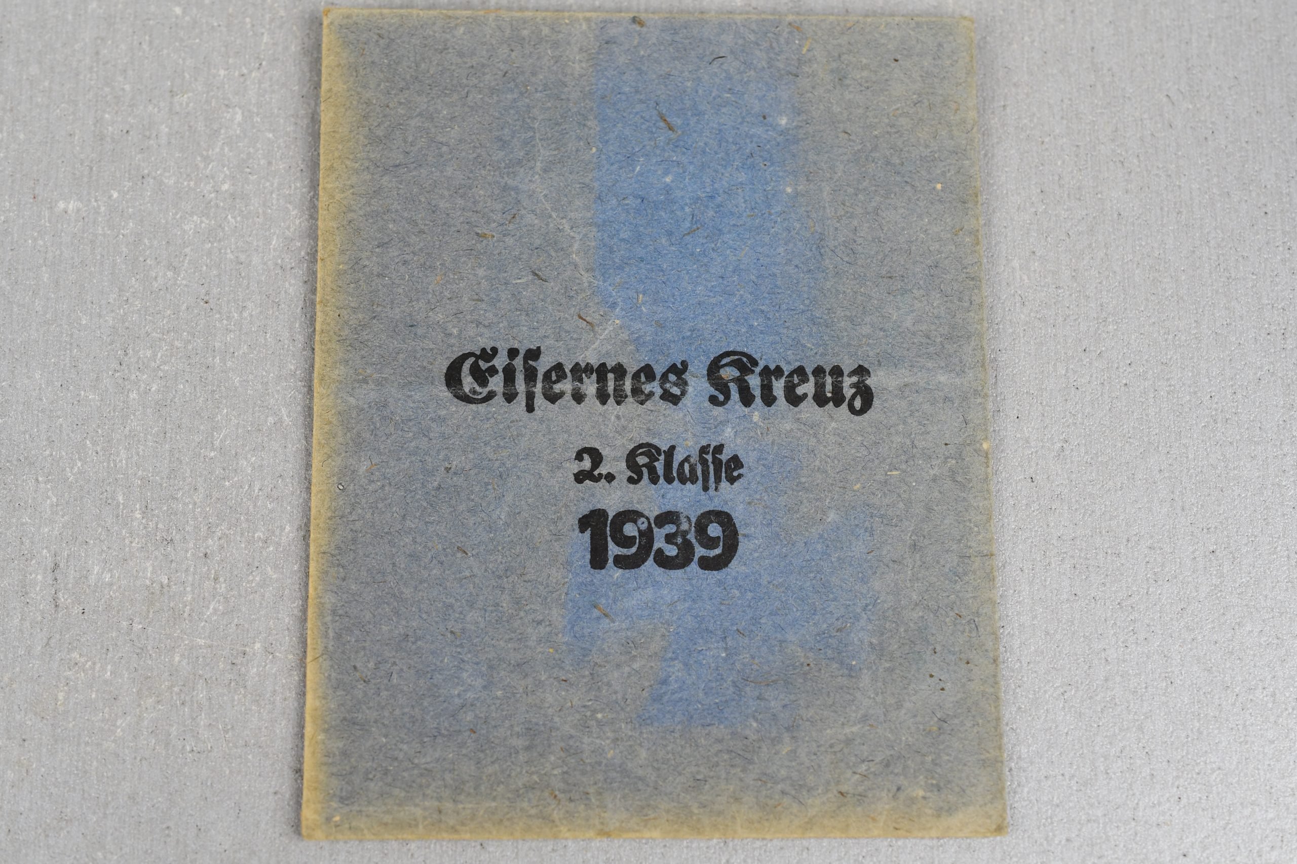 Genuine blue award envelope for the EK2, marked by Friedrich Keller, Oberstein.
