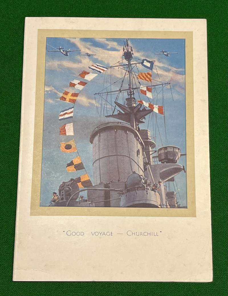 Christmas 1941 Christmas card entitled ' Good Voyage Churchill ' showing a battleship's signal halyards displaying this message which was flown from HMS Prince of Wales on Churchill's return form the USA that year. Explanatory text to the interior. Published by Raphael Tuck & Sons and in used condition.POSTFREE within UK