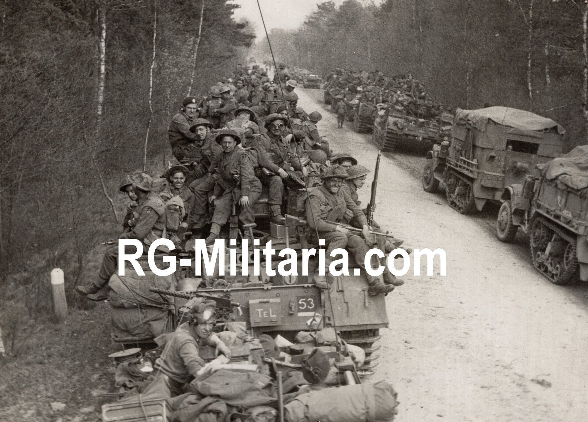 Original WW2 British Press Photo - 15th Scottish division advance on River Elbe (1945)Approximately 21 x 16 cmOriginele Wo2 Britse Persfoto - 15th Scottisch division onderweg naar de Elbe rivier (1945)Ongeveer 21 x 16 cm