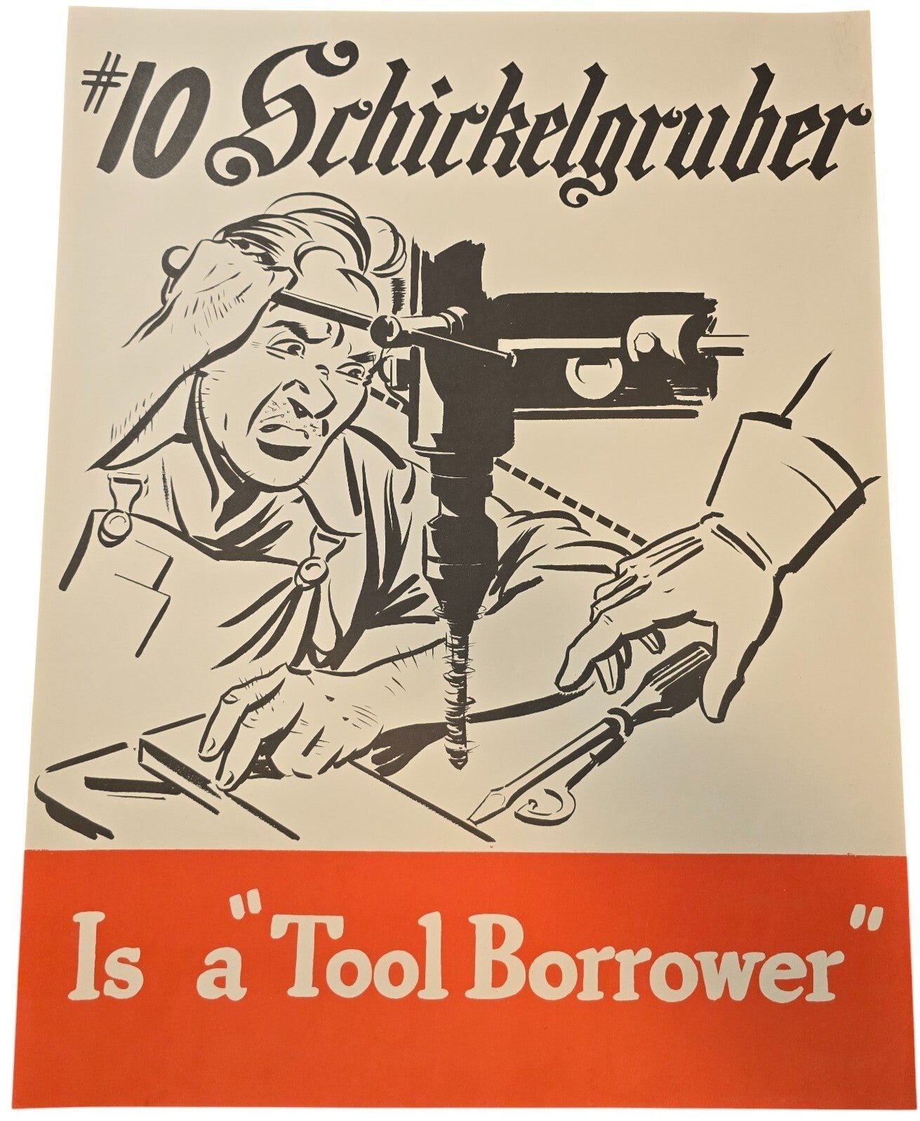 Original WW2 US Poster - #10 Schickelgruber Is a ''Tool Borrower''(1943)Approximately 56 x 44 cmUS propaganda poster about anti-American sentiment. Schickelgruber was the original name of the father of Adolf Hitler.Originele Wo2 Amerikaanse Poster - #10 Schickelgruber Is a ''Tool Borrower'' (1943)Ongeveer 56 x 44 cmAmerikaanse propagandaposter over anti-Amerikaanse sentimenten. Schickelgruber was de oorspronkelijke naam van de vader van Adolf Hitler.