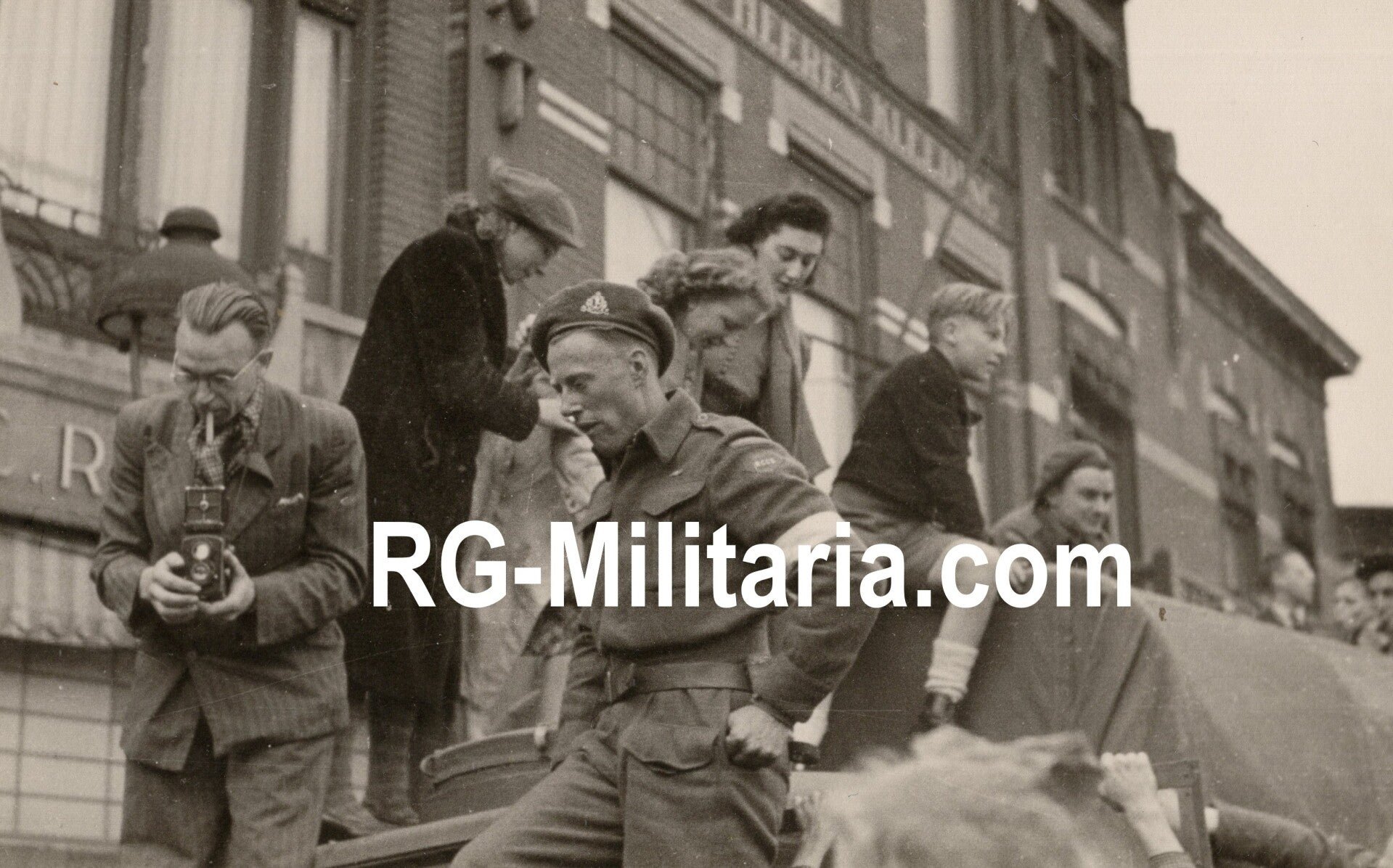 Original WW2 Dutch Liberation Photo - RCCS British soldier during the liberation of Amersfoort, Holland (1945)
