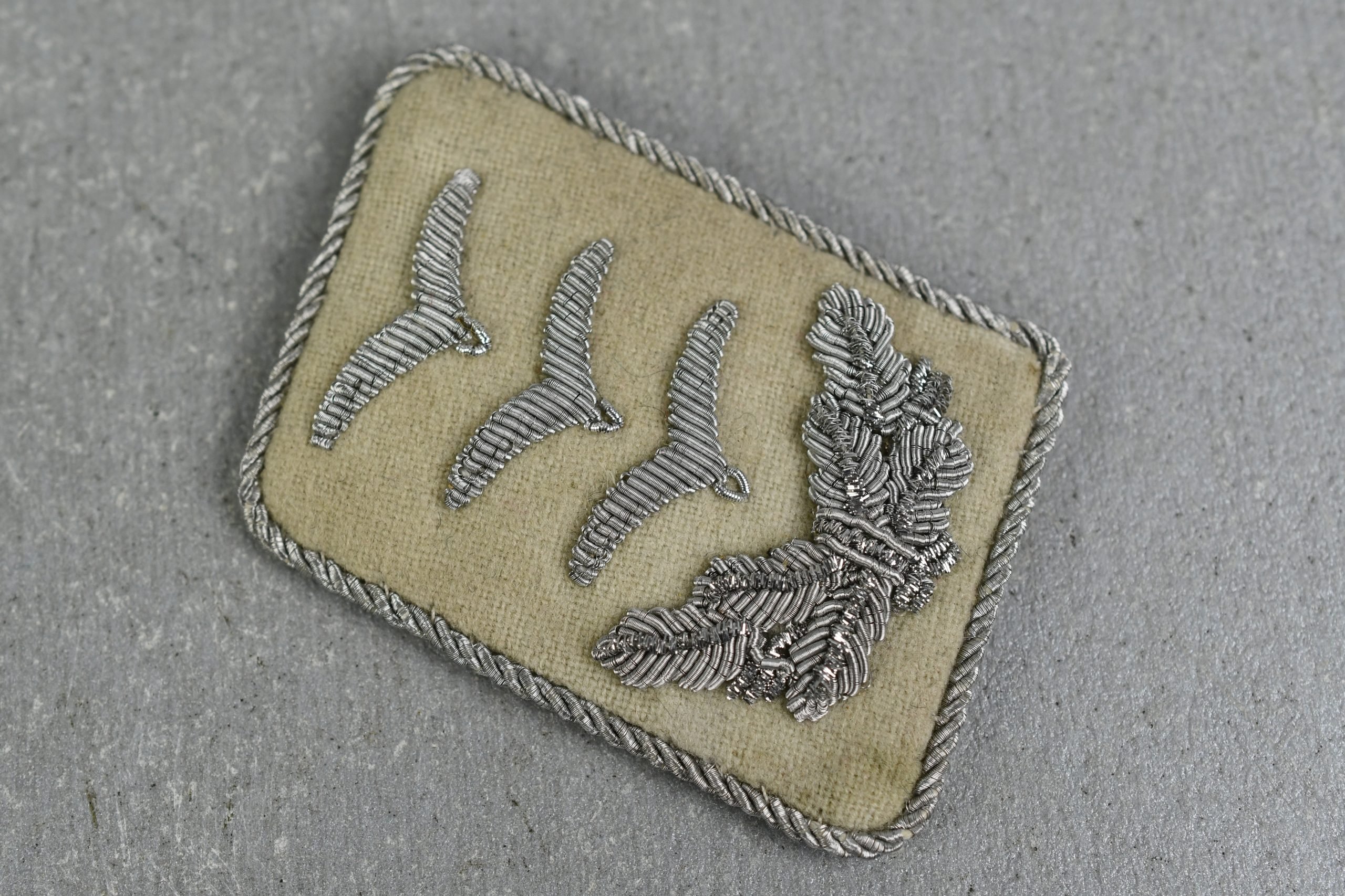 Genuine and rare set white colored Luftwaffe tab for an officer of the Hermann Göring divison. Embroidered bullion rank guls, for the rank of Hauptmann. Reverse shows textbook 'buckram' material.