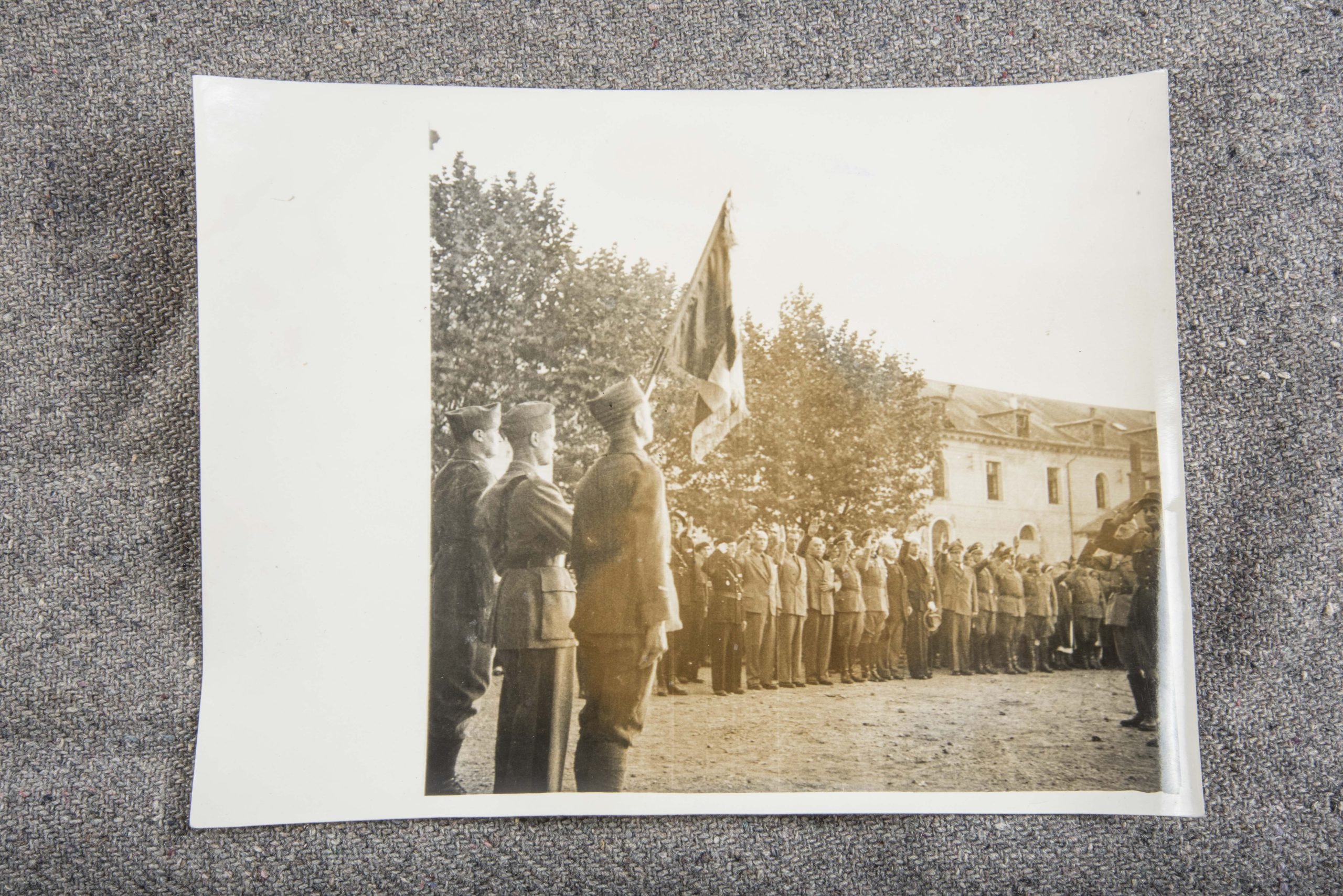 Press Photo; French Heer volunteers. The Legion Des Volontaires Francais contre le Bolchevisme was drafted as Infanterie Regiment 638 and suffered heavy losses for the battle of Moscow. Rare original large 18×24 cm sized photograph taken at Versailles.