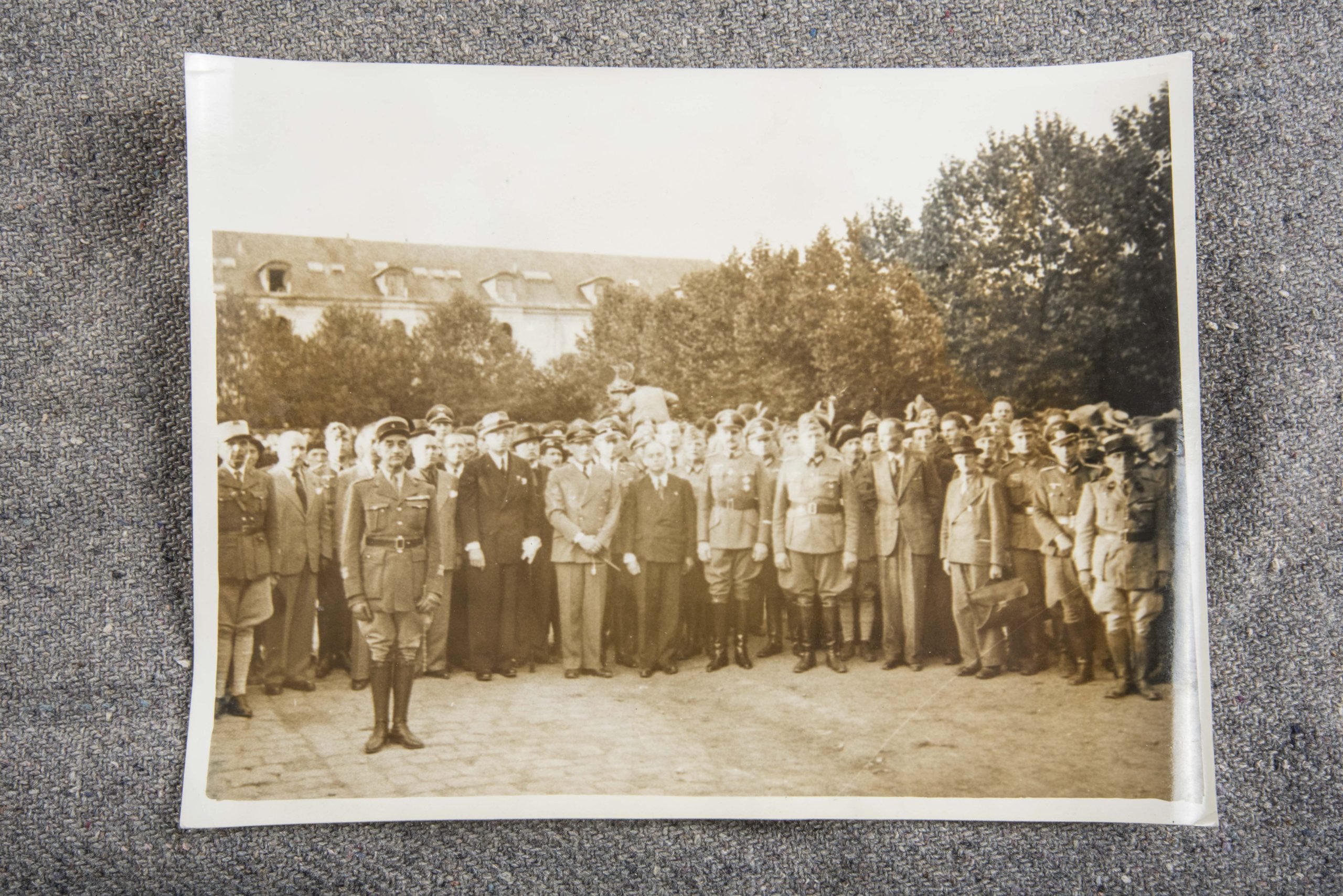 Press Photo; French Heer volunteers. The Legion Des Volontaires Francais contre le Bolchevisme was drafted as Infanterie Regiment 638 and suffered heavy losses for the battle of Moscow. Rare original large 18×24 cm sized photograph taken at Versailles.