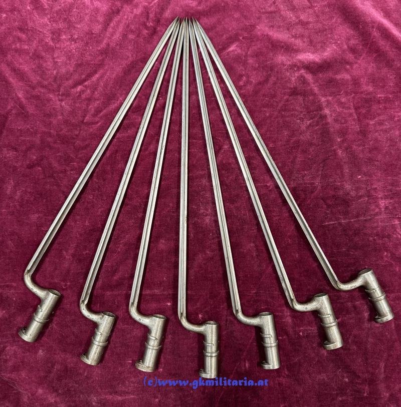 k.u.k. Stichbajonett Lorenz M1854 !! - ohne Scheide - 7 StĂŒck vorrĂ€tig - alle schön gestempelt - Sperring fehlt - sonst sehr guter Zustand!GesamtlĂ€nge ohne Scheide: 553 mmKlingenlĂ€nge 465 mmKlingenbreite: 26 mmLĂ€nge der TĂŒlle: 80 mmInnendurchmesser der TĂŒlle: 20,5mmGewicht ohne Scheide: 370 gBlankwaffen Verkauf ab 18 Jahre!Abholung und Besichtigung in meinem VerkaufsbĂŒro in 2640 Gloggnitz, Angelius Rumplergasse 6, Ăsterreich möglich.Momentan kein Versand in die USA möglich!