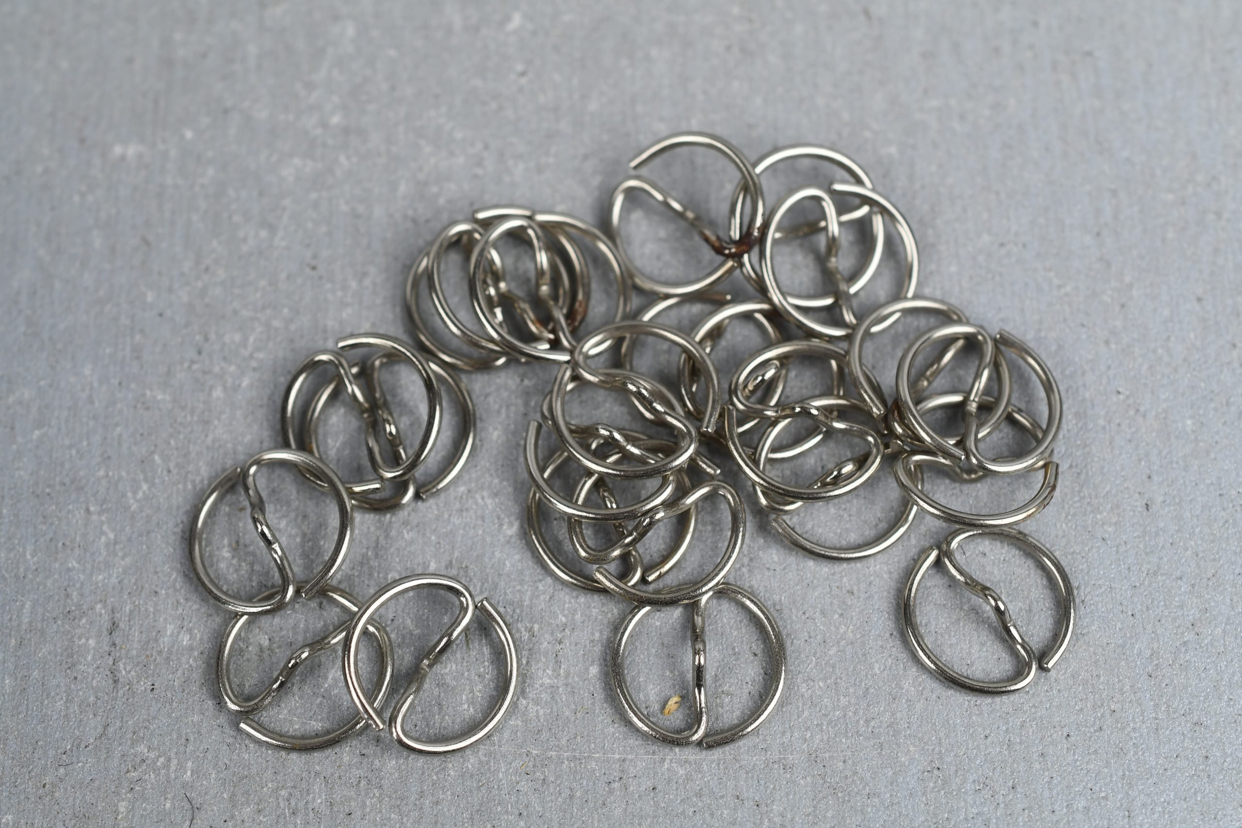 Period:Second World WarOrigin:GermanyType:Button retaining hooksMaterial:SteelShape:S-shapedCondition:Original, usedOriginal Wehrmacht S-shaped metal hooks, used as button retaining hooks on summer field blouses (including HBT and other lightweight Feldblusen). These small but essential components were fitted behind the fabric to secure and support the front buttons, reducing strain on the cloth during wear.Due to their small size, these hooks are very often missing on surviving uniforms, making original replacements increasingly difficult to find.These hooks were installed on summer Feldblusen, including mid- and late-war lightweight models, such as the examples shown in the reference photos. They are ideal for restoration projects or for completing an otherwise original jacket that is missing one or more retaining hooks. Good used condition.Perfectly usable for restoration purposes.5 euro per piece