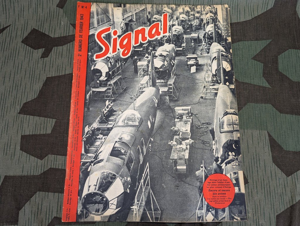 Original February of 1943 Signal magazine in French. Another nice issue of Signal with a number of good color pictures and some very good ads. May ship slightly rolled.