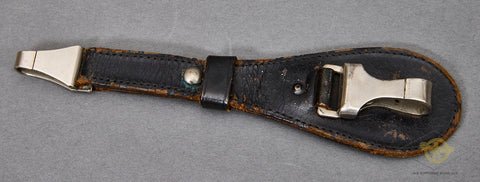 German WWII Early Tear Drop Dagger or Sword Hanger-This would be worn by SS, or police. It is made of a blackpatentleather, with nickel silver fittings. The leather shows some light cracking on the obverse, and reverse, but overall, this is in good condition.