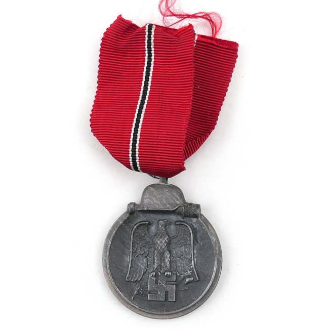 German Eastern Front Medal (Medaille für die Winterschlacht im Osten). The German Eastern Front Medal (Medaille für die Winterschlacht im Osten) was instituted on 26 May 1942 to commemorate the first winter campaign in Russia, operation Barbarossa. The medal was also known as the 'Frozen Meat Medal'. Approximately 3 million examples have been awarded. The medal is not visible maker marked. The medal is complete with its original ribbon. Nice example in good condition!