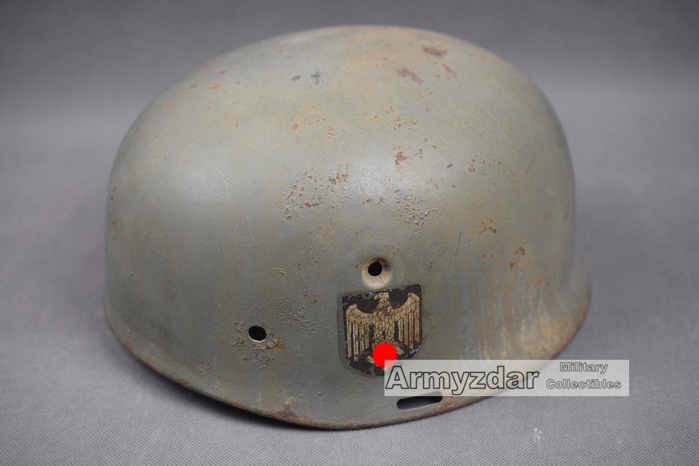 This is a high quality reproduction of M1937 German paratrooper helmet shell. The helmet is reworked like original from M35 shell and has added screw holes, chinstraps holes and of course inside edge. The helmet was perfectly aged to look like original.You can find on internet cheap helmets, but not in this quality.Size of shell: 66