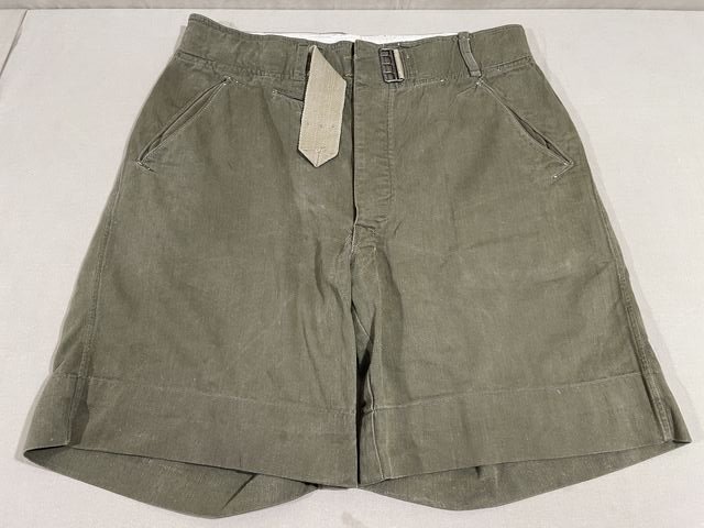 Nice 100% original shorts showing use with an improvised waist closure. These shorts have honest war-time wear but are still in excellent condition The waist is approx. 30 inches.