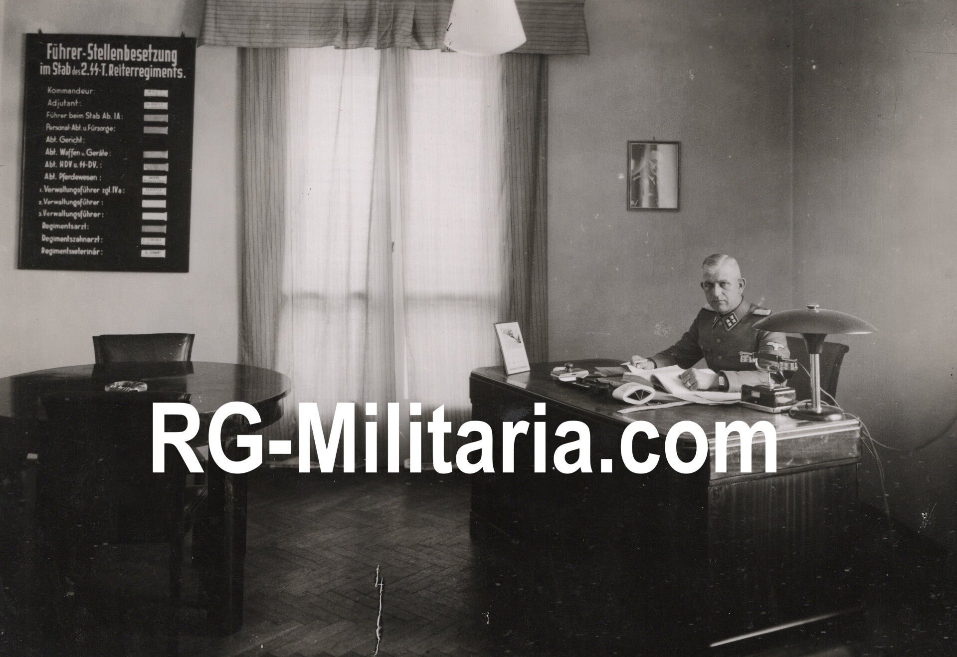 Original WW2 German Waffen SS Press Photo - SS-Kavallerie-Regiment 2 Cavalry Kommandeur Franz MagillApproximately 18 x 13 cmSS-Totenkopf-Reiter-Standarte 2 / SS-Kavallerie-Regiment 2.This regiment was responsible for fighting against the resistance (bandenkampf) and actions against Jewish civilians. This regiment, under the lead of Franz Magill, is responsible for killing thousands of Jewish people in the Eastern part of Europe.Franz Magill later joined the SS-Sonderkommando Dirlewanger and later the 14th Waffen SS Grenadier Division.On the backside, you can see a portrait of Heinrich Himmler framed, and a large sign 'Führer Stellenbesetzung im Stab des 2. SS T. Reiterregiments. Close to no pictures survived of Magill.Originele Wo2 Duitse Waffen SS Persfoto - SS-Kavallerie-Regiment 2 Kommandeur Franz MagillOngeveer 18 x 13 cmDit regiment was verantwoordelijk voor de strijd tegen het verzet (bandenkampf) en acties tegen Joodse burgers. Onder leiding van Franz Magill is dit regiment verantwoordelijk voor de dood van duizenden Joden in Oost-Europa.Franz Magill trad later toe tot het SS-Sonderkommando Dirlewanger en vervolgens tot de 14e Waffen SS Grenadierdivisie.Op de achterkant is een ingelijst portret van Heinrich Himmler te zien, en een groot bord met de tekst 'Führer Stellenbesetzung im Stab des 2. SS T. Reiterregiments.' Er zijn vrijwel geen foto's bekend van Magill.