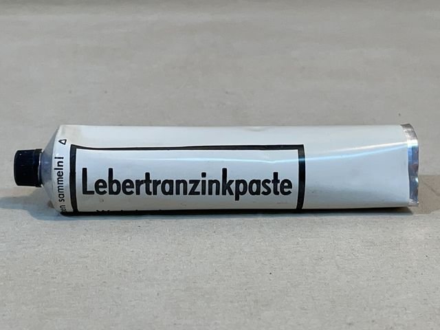 Original WWII German Medical Item, Unfilled Lebertranzinkpaste Metal Tube (Tan)