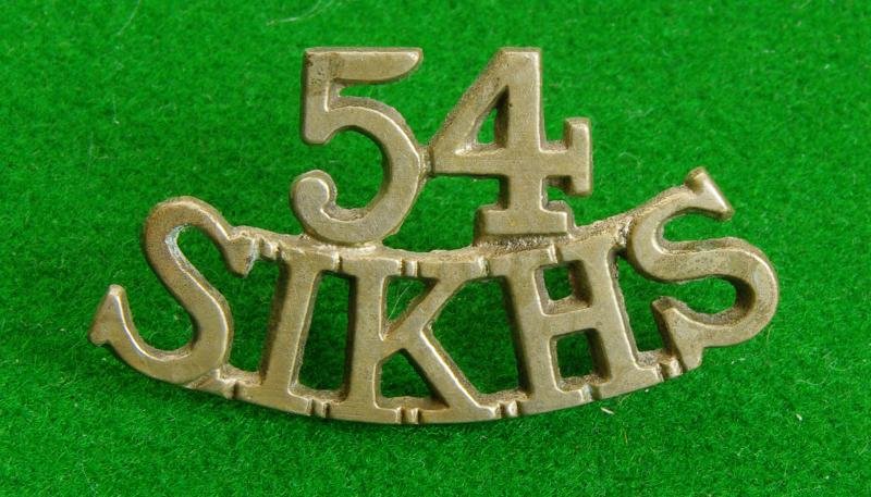 Brass shoulder title with two lugs to the reverse, ' 54 / Sikhs'