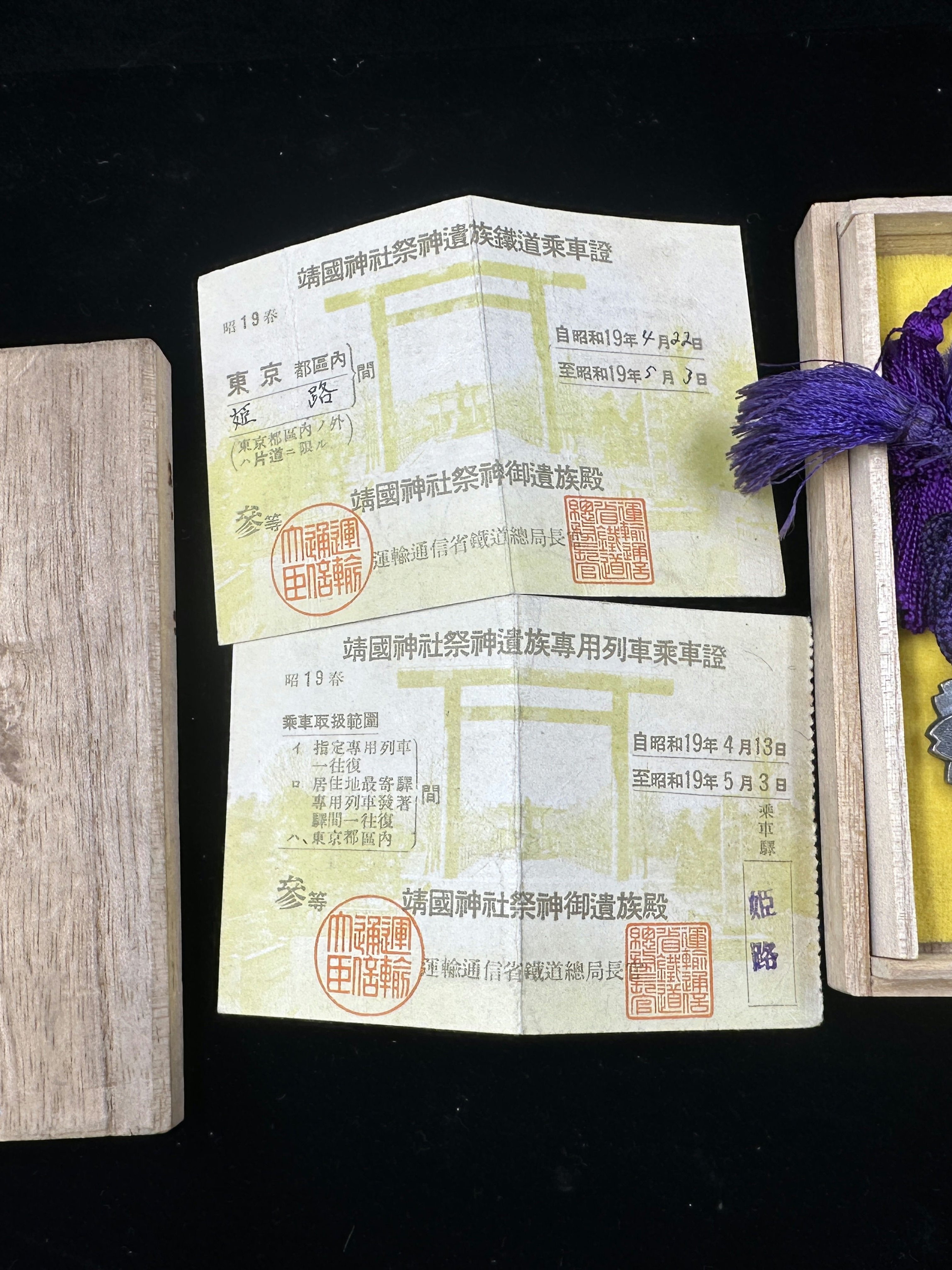 This is a KIA badge and train ticket from Himeji to Tokyo to the war shrine. Tickets are given to family members of KIA soldiers. Shipping fees included in the United States. Please email us at thewarfront1944@gmail.com for international shipping quote. Located in Kirkland location.