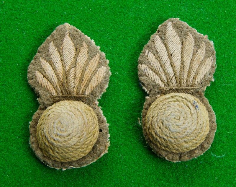 Pair of WW I padded and embroidered in shades of khaki NCO's sleeve rank insignia. A fused grenade. {Approx 5 cms high}