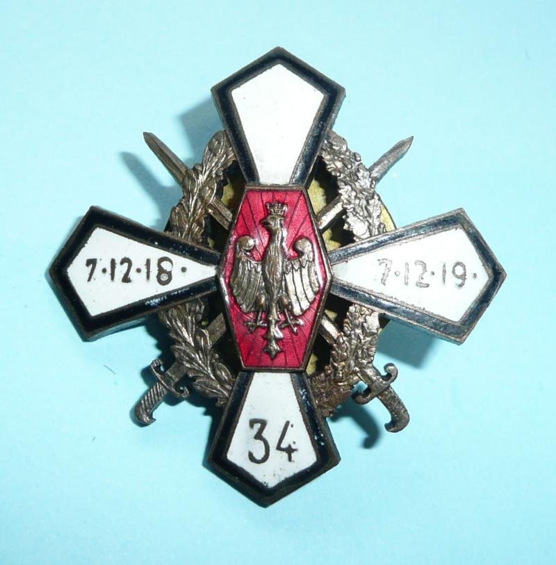 Poland (Polish Infantry) - 34th Regiment Officer's Enamel Cap Badge - Spinner maker marked J. Panasiuk, Warsaw
