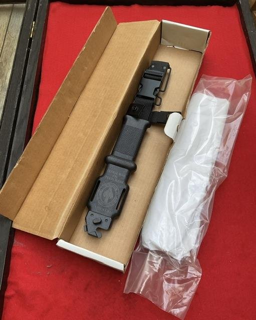 I bought this about 12 years ago at the SOS show in USA, Boxed , mint condition, packet never opened.Very rare commemorative M9 bayonet.No i will not open packetAge restricted item
