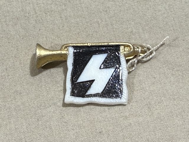 Original Nazi Era German WHW Donation Hitler Youth Trumpet w/Banner